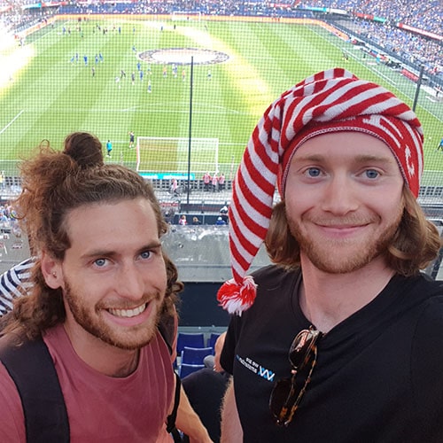 רווקים בני 26, גרים במרכז אמסטרדם כבר 4 שנים, יזמים ושותפים בחברת התיירות הישראלית We Are Amsterdam. אנחנו חברים טובים עוד מהשירות הצבאי; גיא מספר אחת בכל מה שקשור לסירות, ואחראי על המכירות ויחסי הציבור בחברה. ליעד מדריך טיולים קלאסי, חולה על אנשים ועל היסטוריה, ותותח ביחסי אנוש. אמסטרדם היא העיר שלנו, האהבה שלנו, ואנחנו כאן כדי לספר הכל אודותיה.